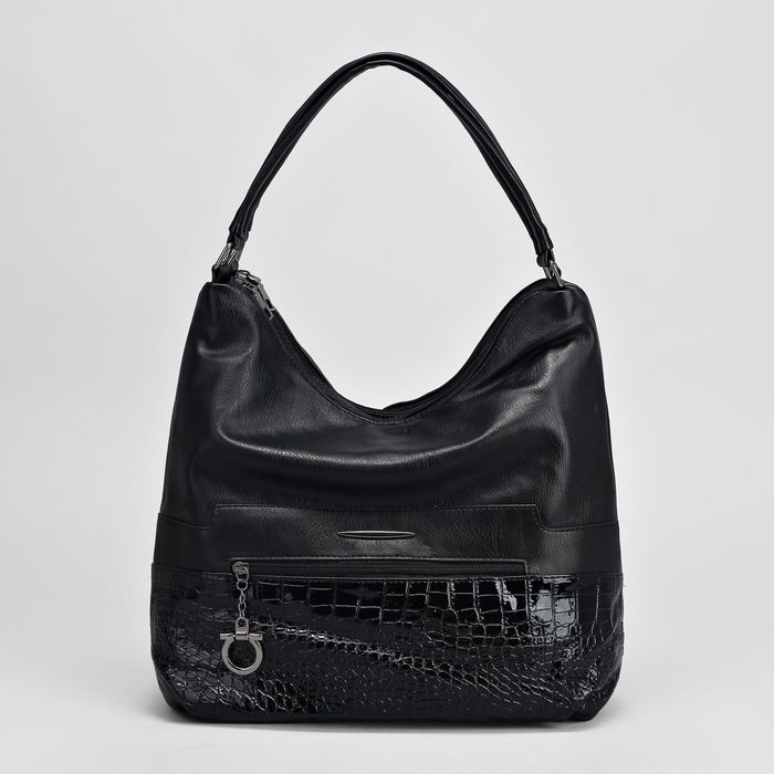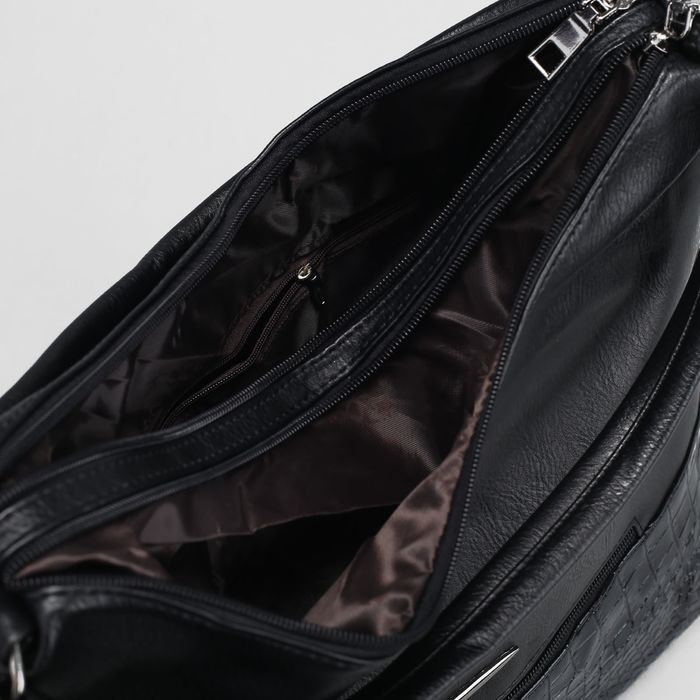 Сумка женская, 2 отдела на молниях, 2 наружных кармана, цвет чёрный