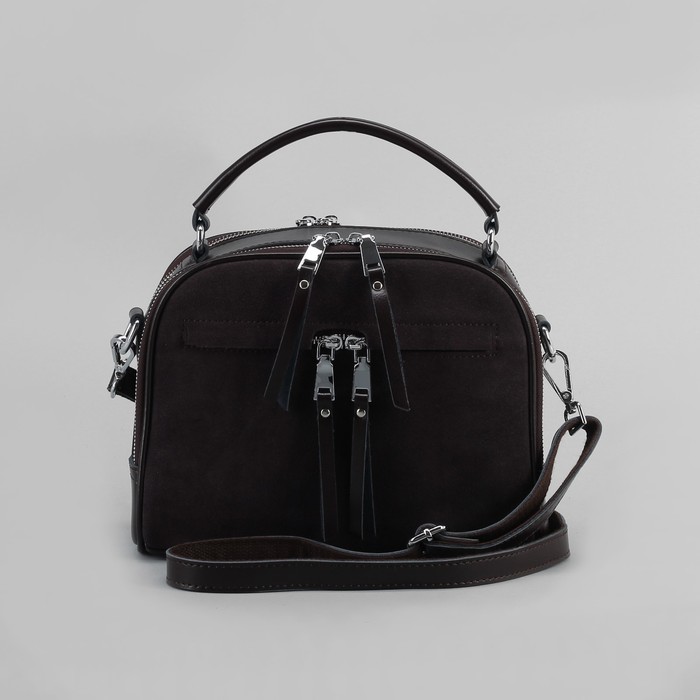 Сумка женская, 2 отдела на молниях, 2 наружных кармана, длинный ремень, цвет кофе
