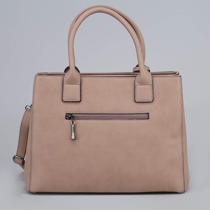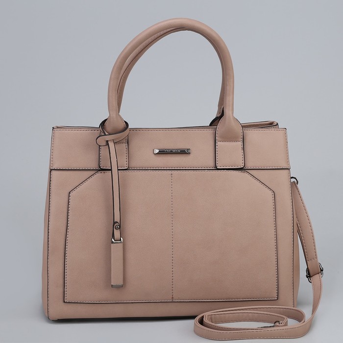 Сумка женская, 2 отдела на молниях, 2 наружных кармана, длинный ремень, цвет пудровый