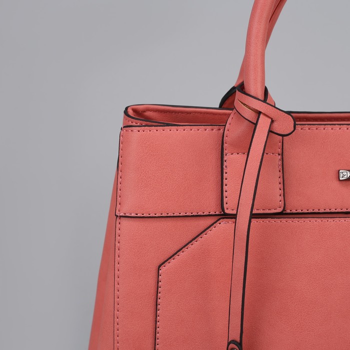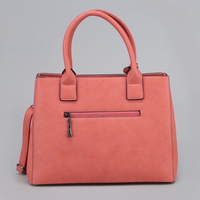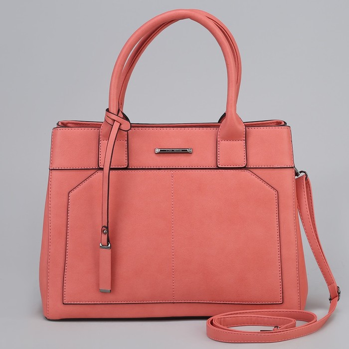 Сумка женская, 2 отдела на молниях, 2 наружных кармана, длинный ремень, цвет розовый