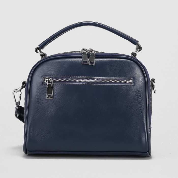 Сумка женская, 2 отдела на молниях, 2 наружных кармана, длинный ремень, цвет синий