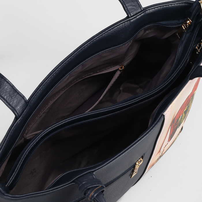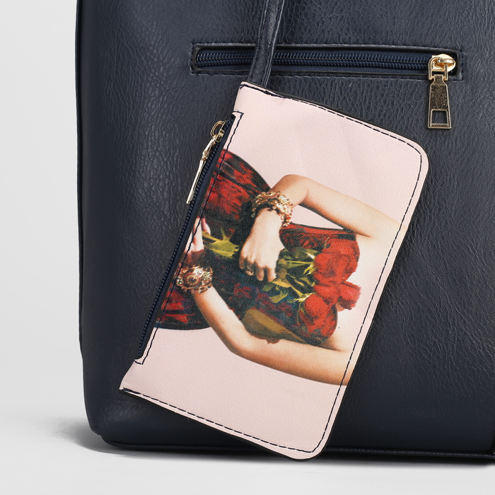 Сумка женская, 2 отдела на молниях, 2 наружных кармана, с кошельком, цвет синий