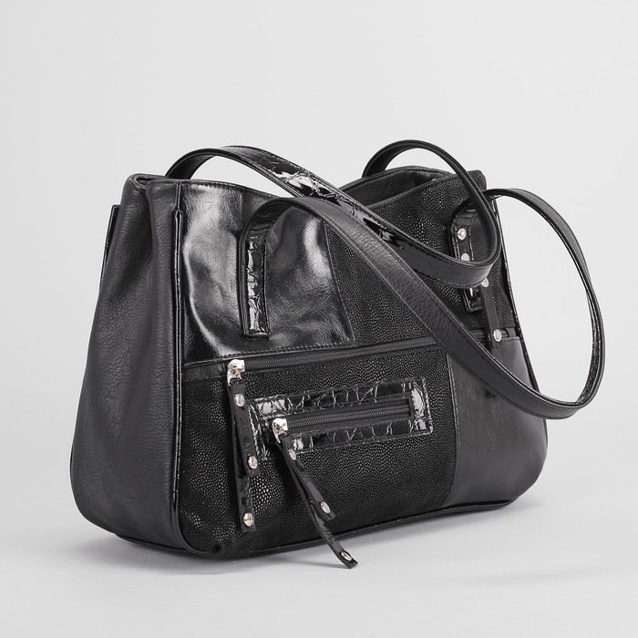 Сумка женская, 2 отдела на молниях, 3 наружных кармана, цвет чёрный