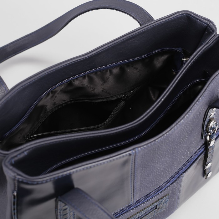 Сумка женская, 2 отдела на молниях, 3 наружных кармана, цвет синий