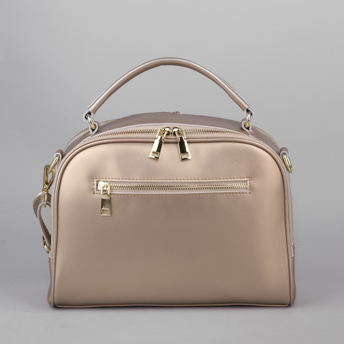 Сумка женская, 2 отдела на молниях, 3 наружных кармана, длинный ремень, цвет золотой