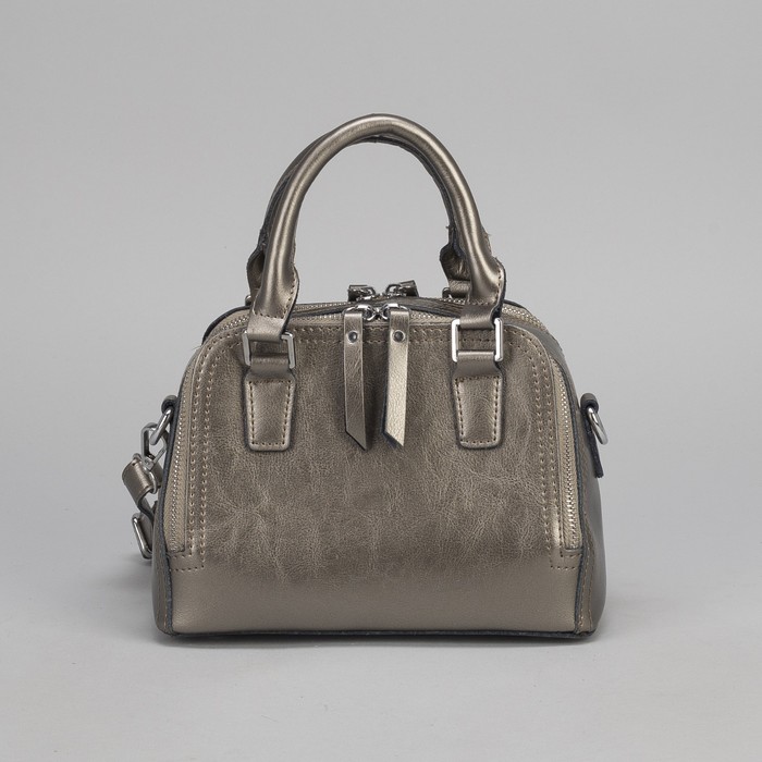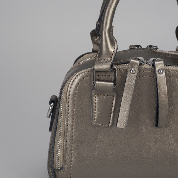 Сумка женская, 2 отдела на молниях, длинный ремень, цвет бронзовый