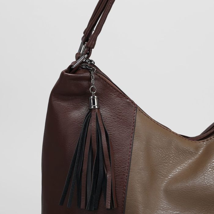 Сумка женская, 2 отдела на молниях, наружный карман, цвет коричневый