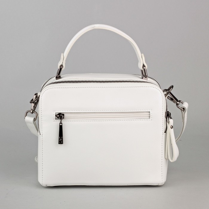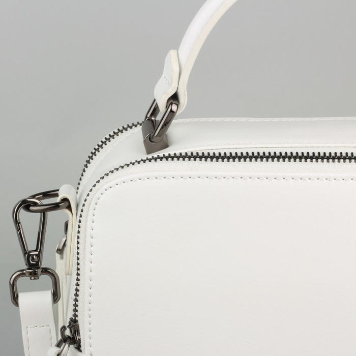 Сумка женская, 2 отдела на молниях, наружный карман, длинный ремень, цвет белый