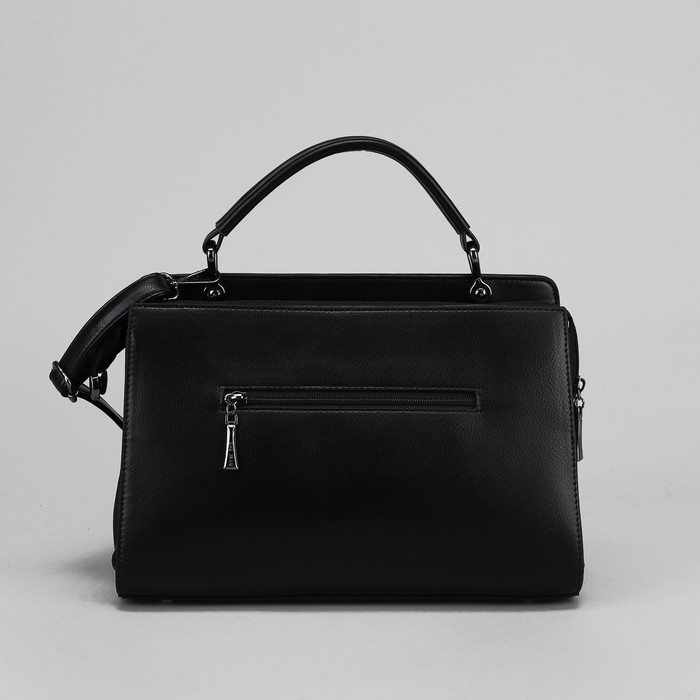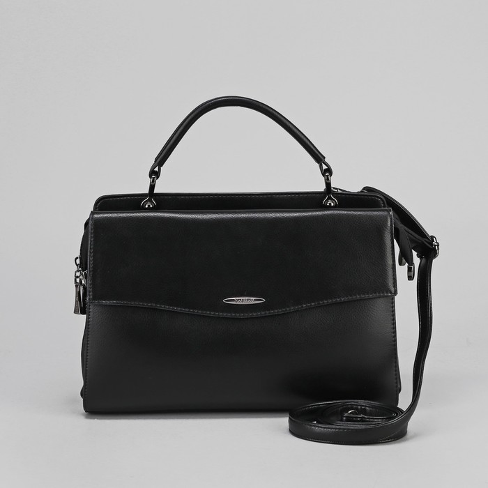 Сумка женская, 2 отдела на молниях, наружный карман, длинный ремень, цвет чёрный