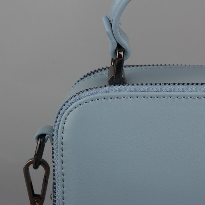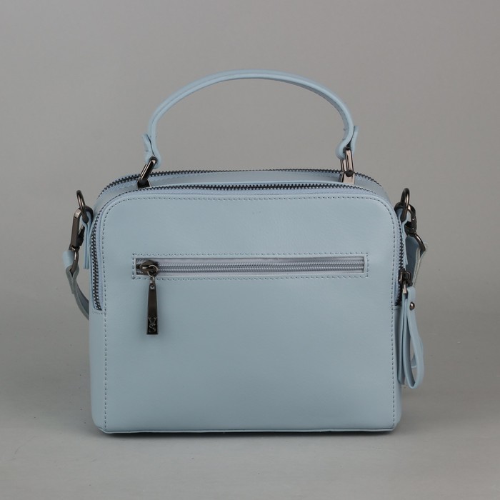 Сумка женская, 2 отдела на молниях, наружный карман, длинный ремень, цвет голубой