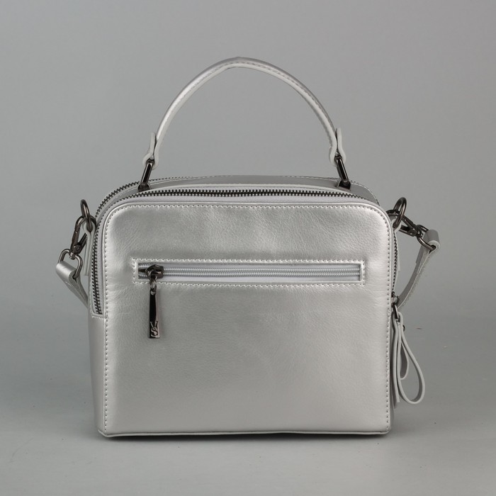 Сумка женская, 2 отдела на молниях, наружный карман, длинный ремень, серый перламутр