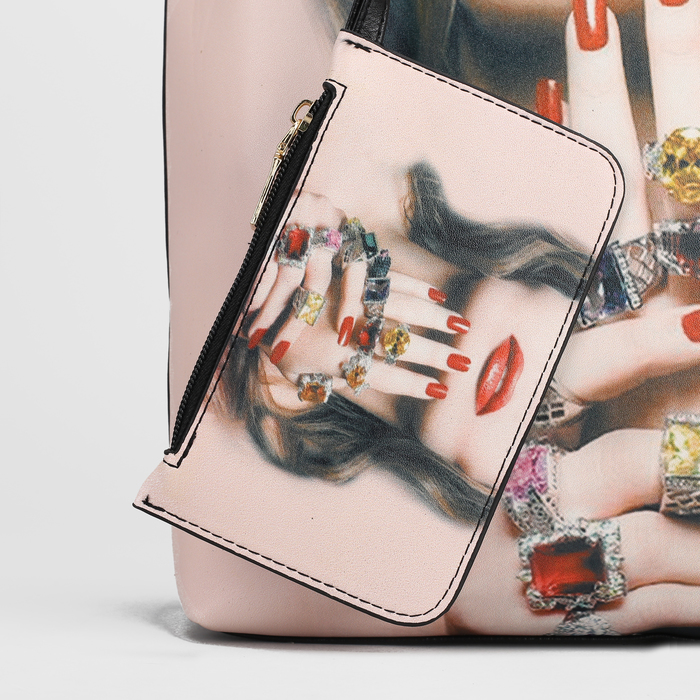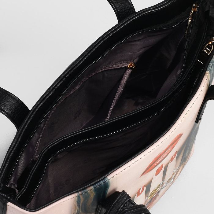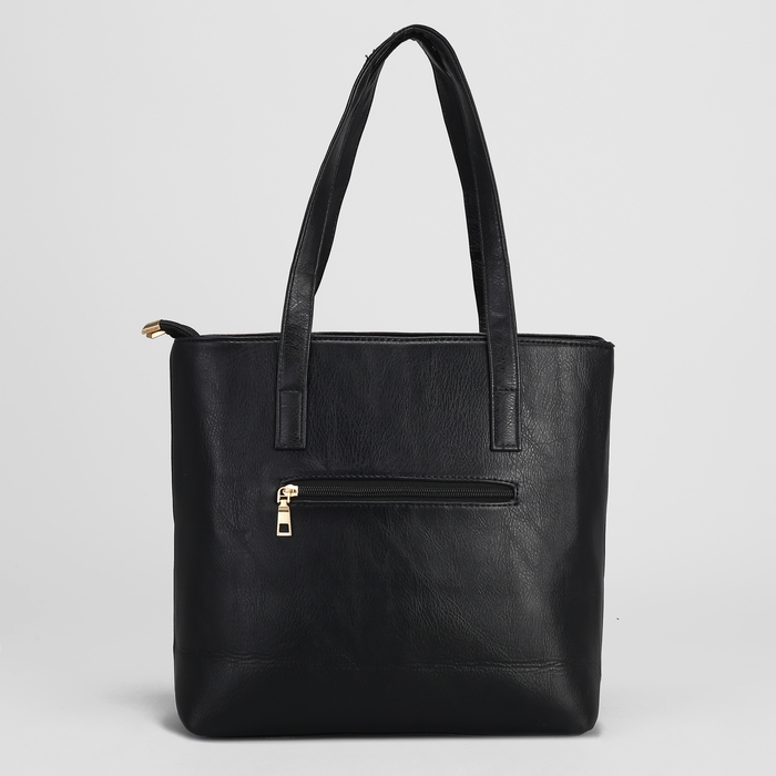Сумка женская, 2 отдела на молниях, наружный карман, с кошельком, цвет чёрный
