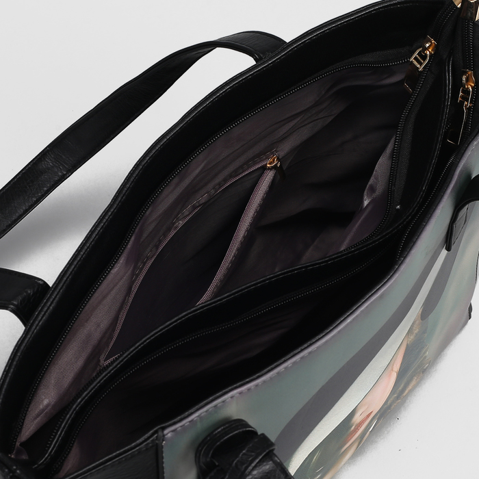 Сумка женская, 2 отдела на молниях, наружный карман, с кошельком, цвет чёрный