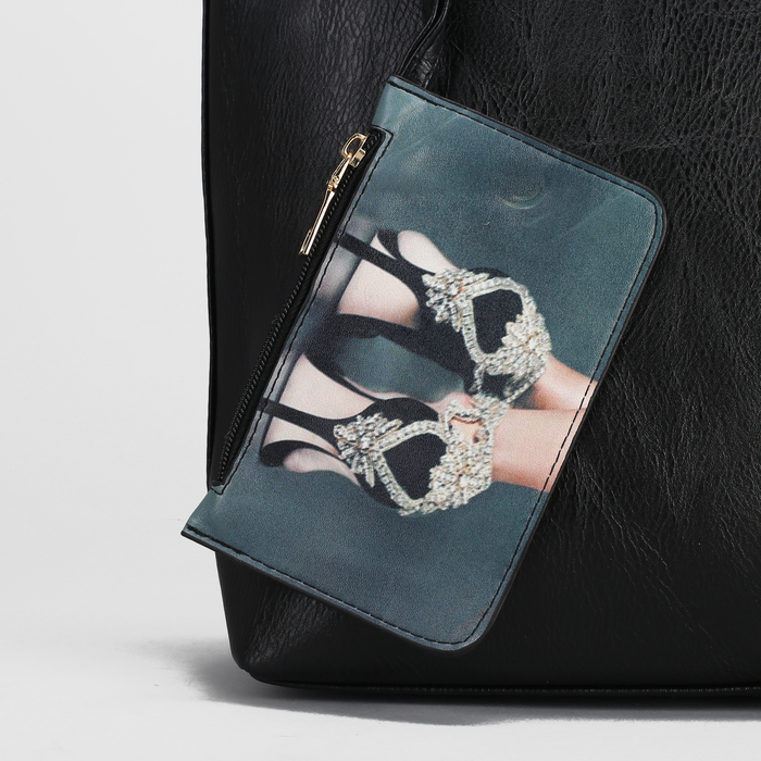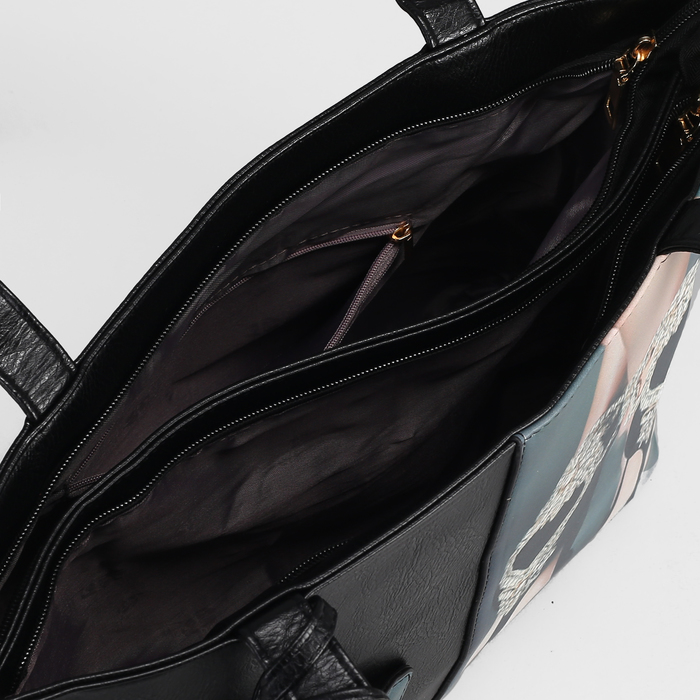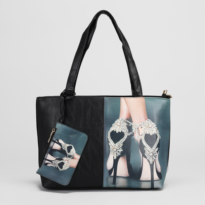 Сумка женская, 2 отдела на молниях, наружный карман, с кошельком, цвет чёрный