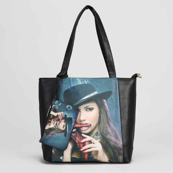 Сумка женская, 2 отдела на молниях, наружный карман, с кошельком, цвет чёрный