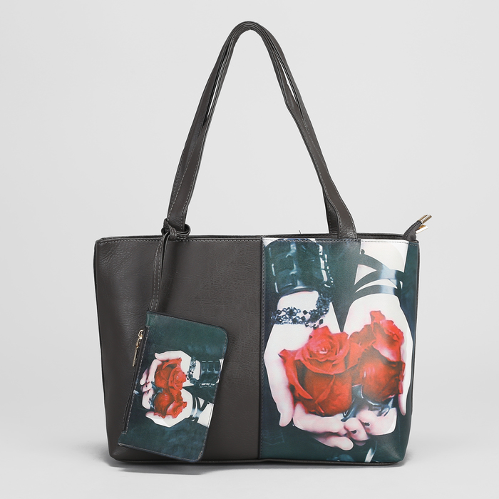 Сумка женская, 2 отдела на молниях, наружный карман, с кошельком, цвет серый