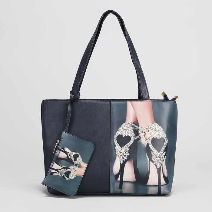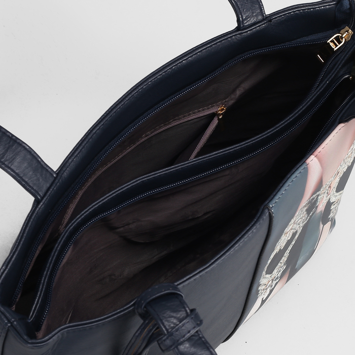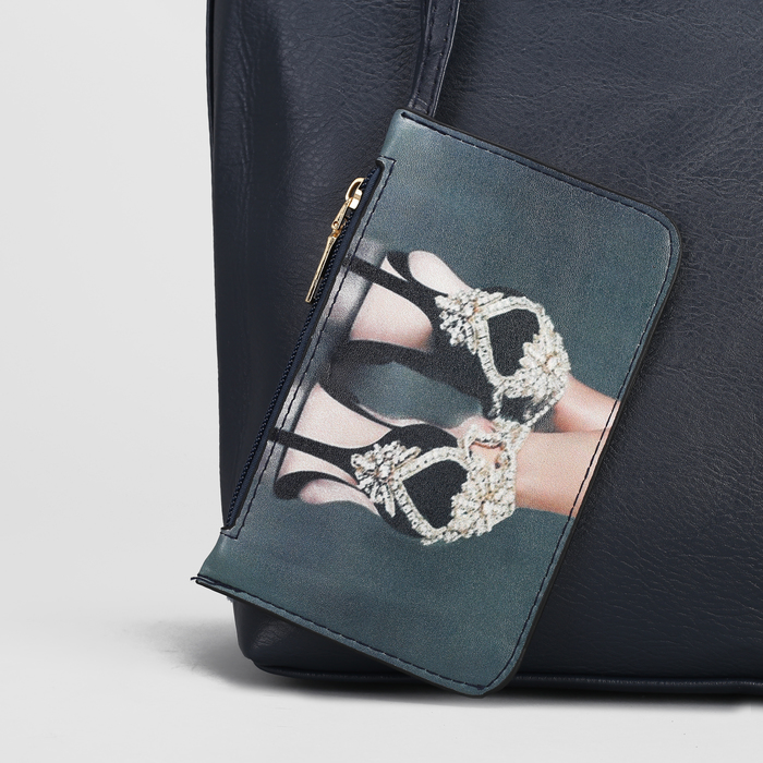 Сумка женская, 2 отдела на молниях, наружный карман, с кошельком, цвет синий