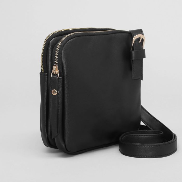 Сумка женская, 2 отдела на молниях, регулируемый ремень, цвет чёрный