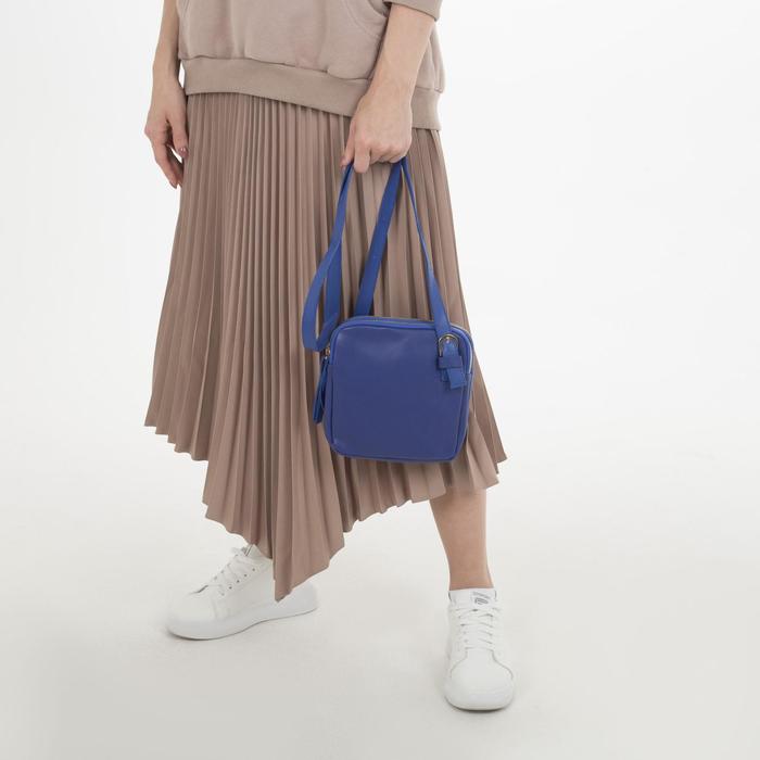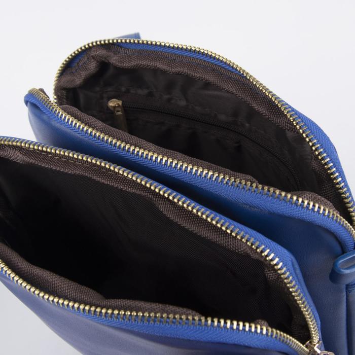 Сумка женская, 2 отдела на молниях, регулируемый ремень, цвет синий