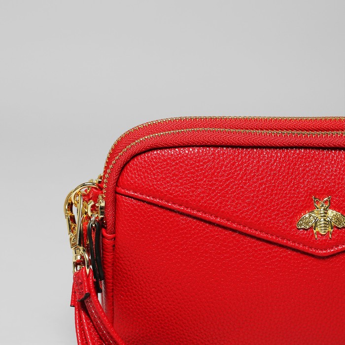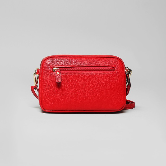 Сумка женская, 2 отдела на молниях, с ручкой, длинный ремень, цвет красный