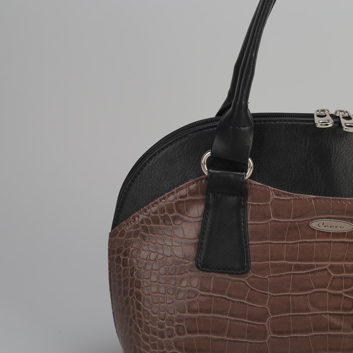 Сумка женская, 2 отдела с перегородками на молнии, наружный карман, цвет чёрный/хаки