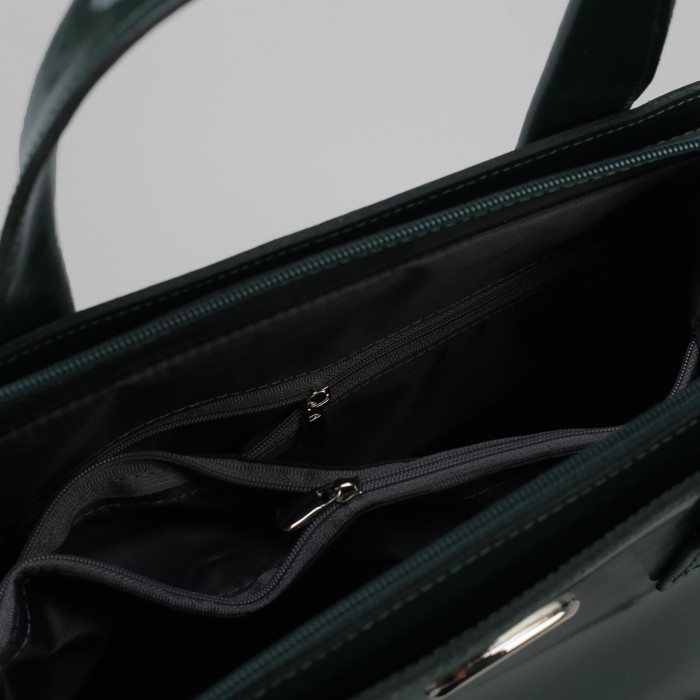 Сумка женская, 2 отдела с перегородками на молнии, наружный карман, изумрудный шик,