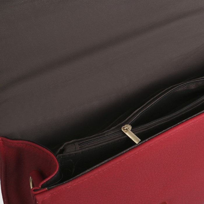 Сумка женская, 2 отдела с перегородкой на молнии, длинный ремень, ручка, цвет красный