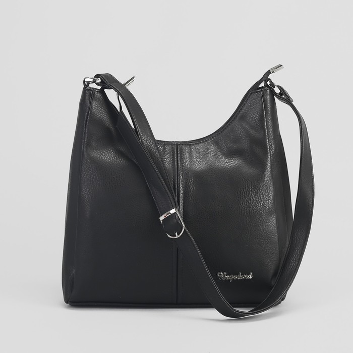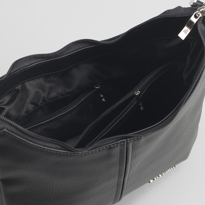 Сумка женская, 2 отдела с перегородкой на молниях, 3 наружных кармана, длинный ремень, цвет чёрный