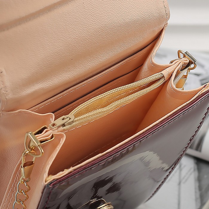 Сумка женская, 2 отдела с перегородкой на замке, длинная цепь, цвет бордовый