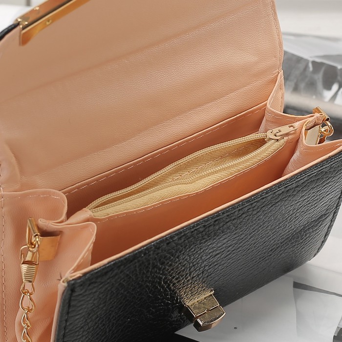 Сумка женская, 2 отдела с перегородкой на замке, длинная цепь, цвет чёрный