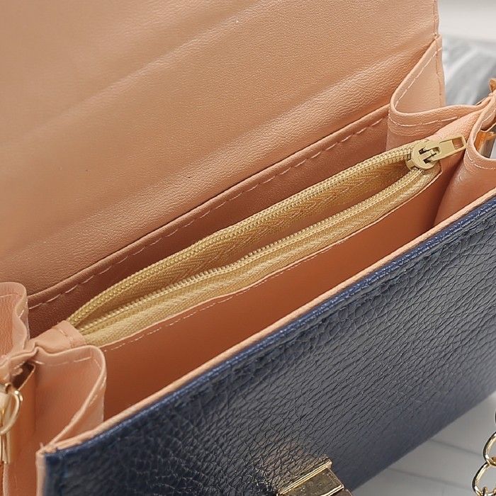 Сумка женская, 2 отдела с перегородкой на замке, длинная цепь, цвет синий