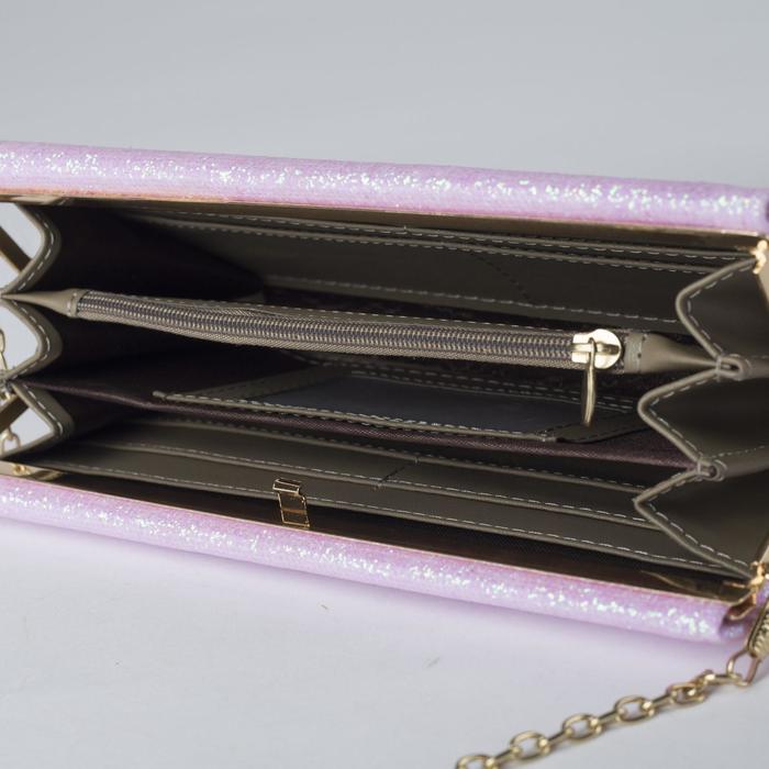 Сумка женская, 3 отдела на фермуаре, длинная цепь, цвет розовый