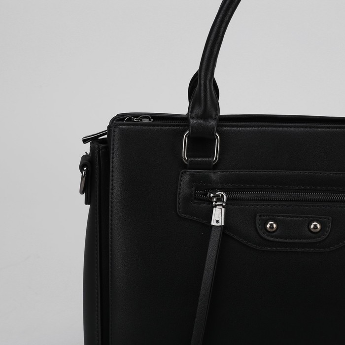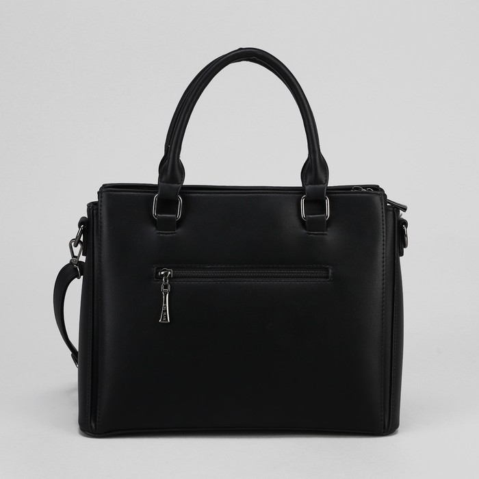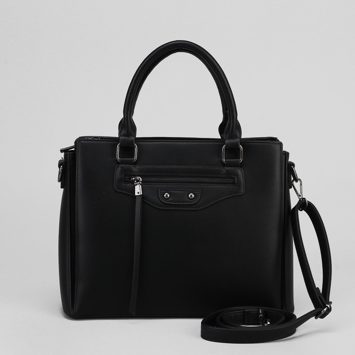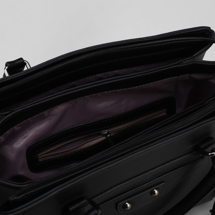 Сумка женская, 3 отдела на молнии, 2 наружных кармана, цвет чёрный