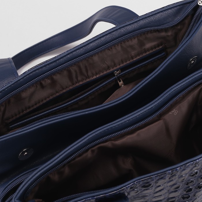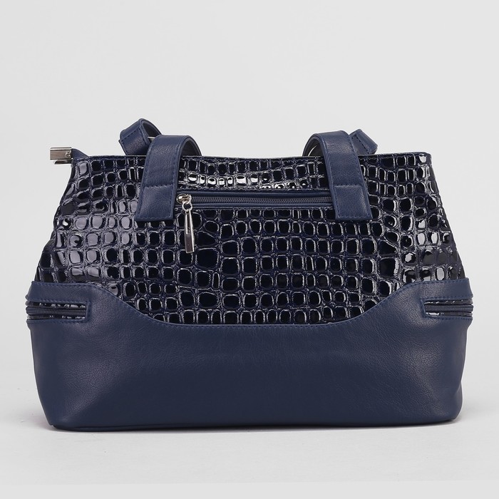 Сумка женская, 3 отдела на молнии, 3 наружных кармана, цвет синий