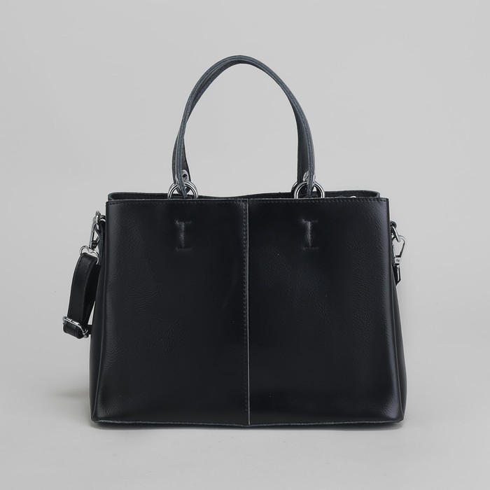 Сумка женская, 3 отдела на молнии, длинный ремень, цвет чёрный