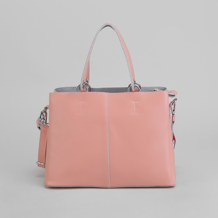 Сумка женская, 3 отдела на молнии, длинный ремень, цвет розовый