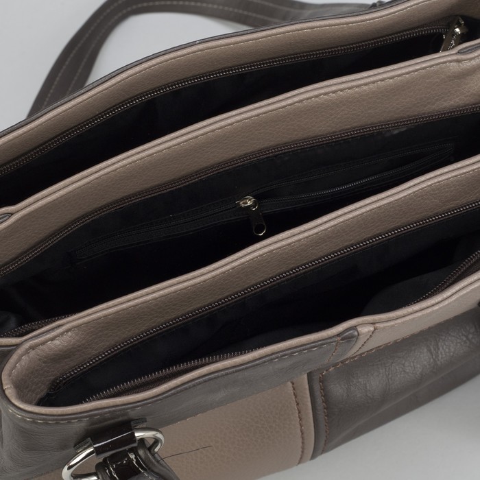 Сумка женская, 3 отдела на молнии, наружный карман, цвет коричневый