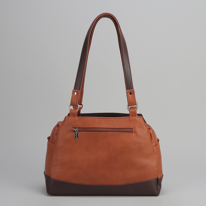 Сумка женская, 3 отдела на молнии, наружный карман, цвет коричневый/тёмно-коричневый