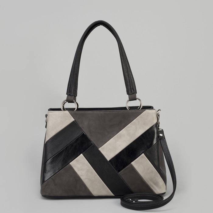 Сумка женская, 3 отдела на молнии, наружный карман, цвет серый