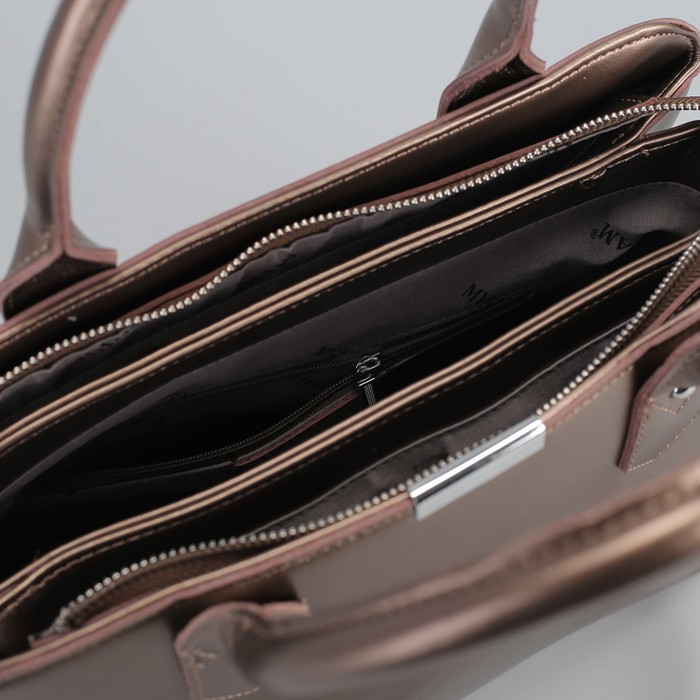 Сумка женская, 3 отдела на молнии, наружный карман, длинный ремень, цвет бронзовый