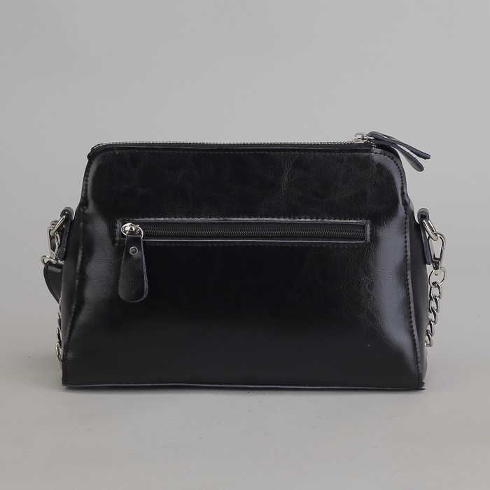 Сумка женская, 3 отдела на молнии, наружный карман, длинный ремень, цвет чёрный