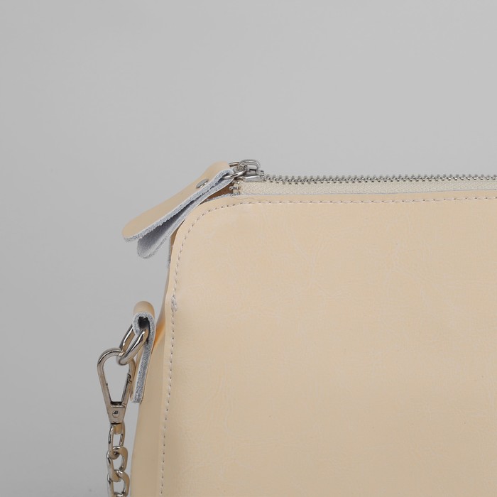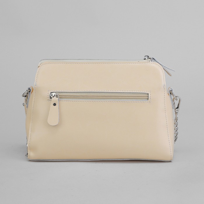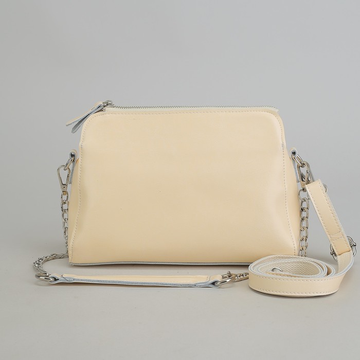 Сумка женская, 3 отдела на молнии, наружный карман, длинный ремень, цвет молочный