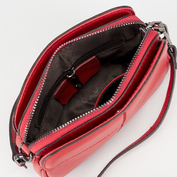 Сумка женская, 3 отдела на молнии, наружный карман, регулируемый ремень, цвет красный
