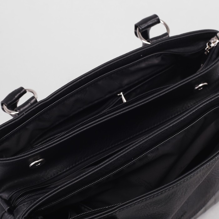 Сумка женская, 3 отдела на молниях, 2 наружных кармана, цвет чёрный