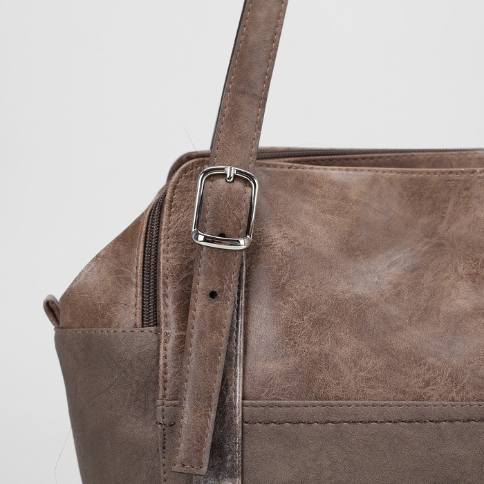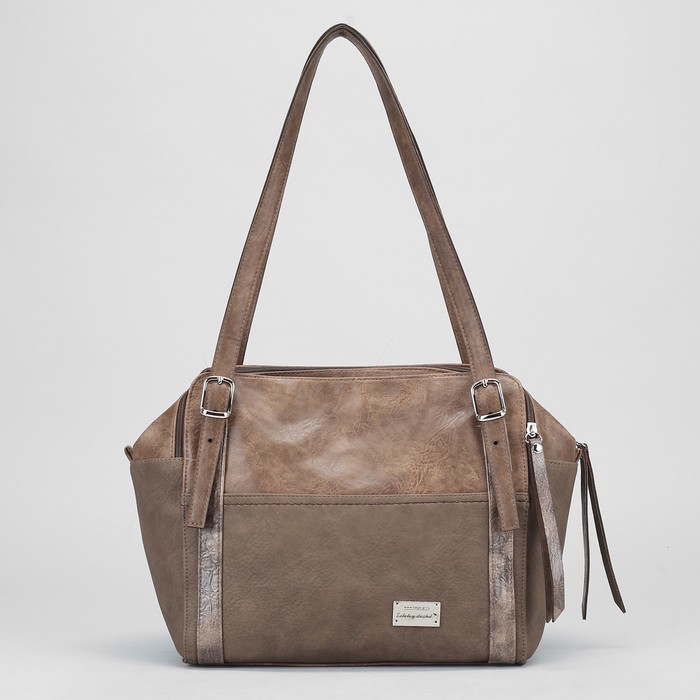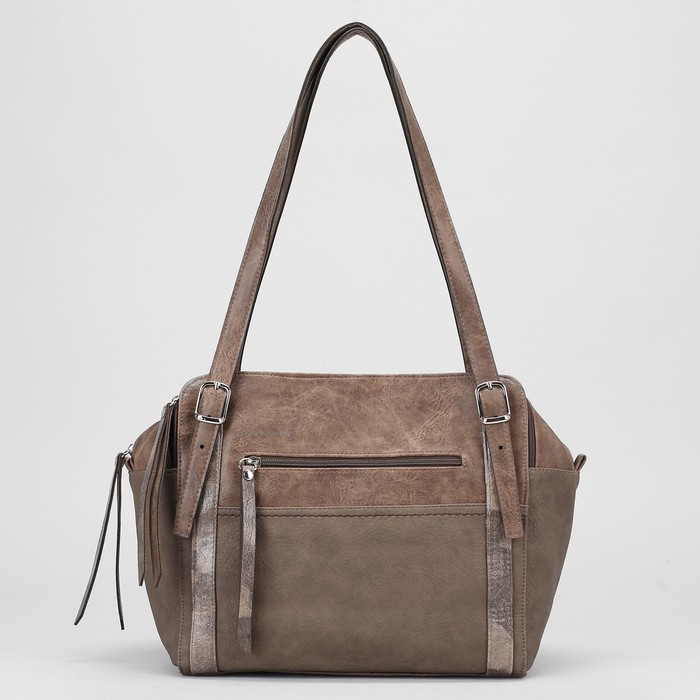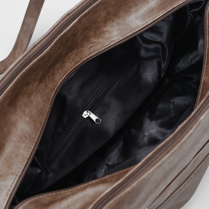 Сумка женская, 3 отдела на молниях, наружный карман, цвет коричневый