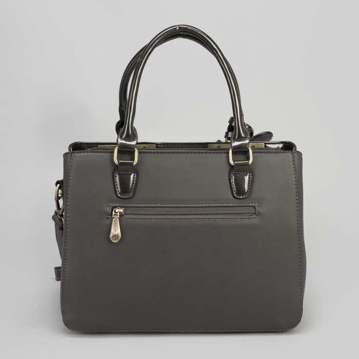 Сумка женская, 3 отдела на молниях, наружный карман, длинный ремень, цвет серый