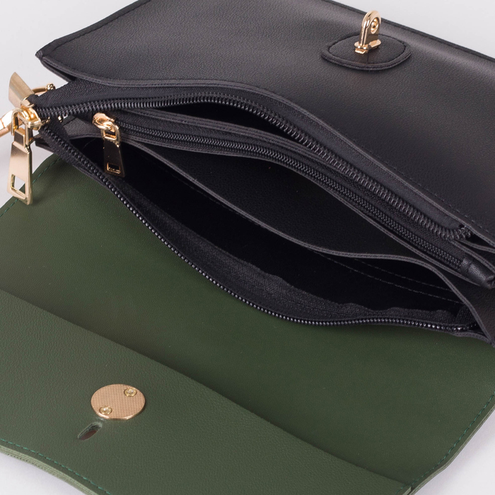 Сумка женская, 3 отдела на молниях, регулируемый ремень, цвет чёрный/зелёный