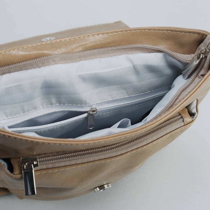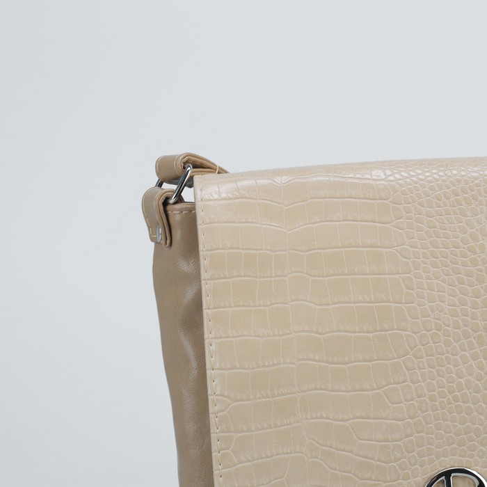 Сумка женская на клапане, 1 отдел, 1 наружный карман, бежевая