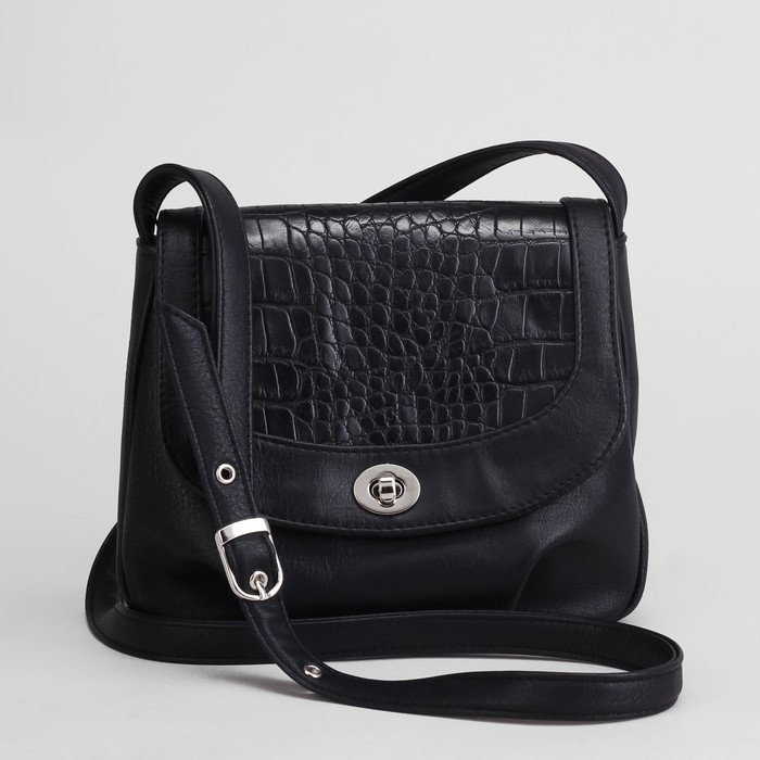 Сумка женская на клапане, 1 отдел, регулируемый ремень, цвет чёрный
