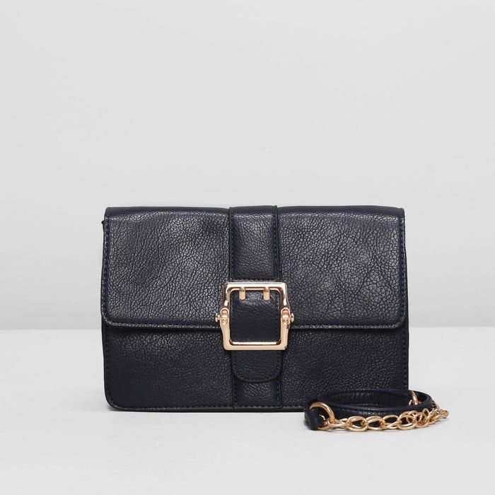 Сумка женская на клапане, 1отдел, наружный карман, цепочка, цвет тёмно-синий